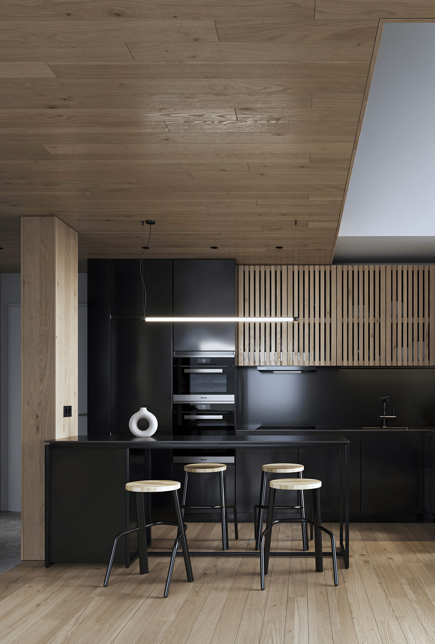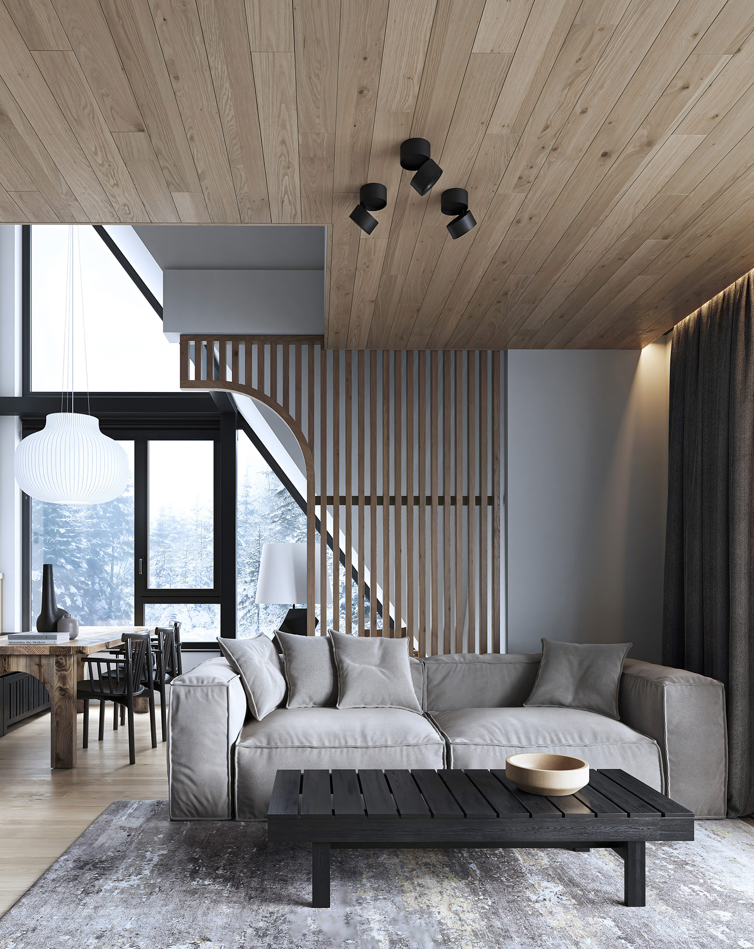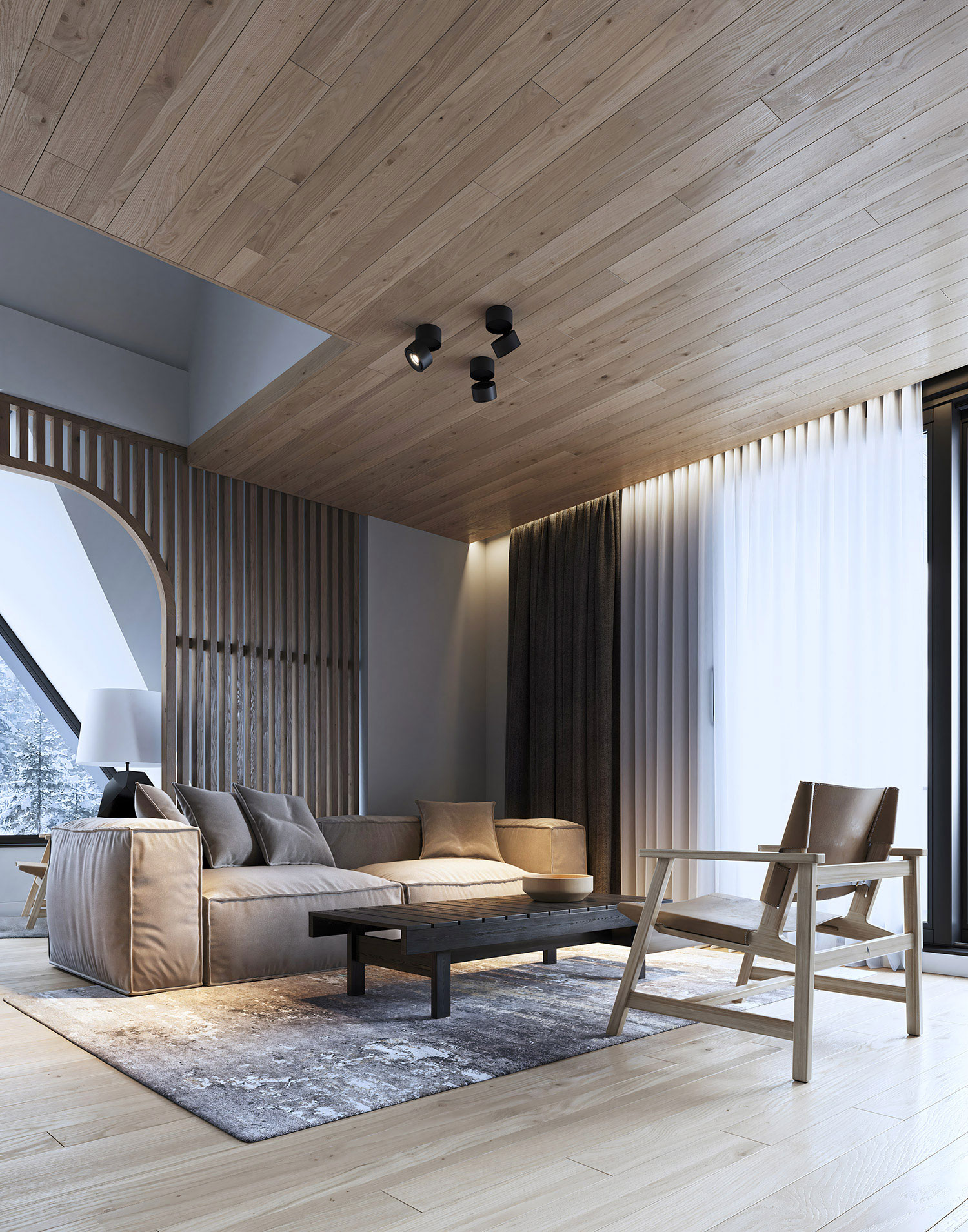 This three-level apartment, situated in a newly built mountain aparthotel in Divčibare, Serbia, is designed as a cozy yet modern retreat that harmonizes with its natural surroundings. The interior concept centers around warm, tactile materials—such as natural wood, textured fabrics, and soft lighting—paired with clean lines and a muted color palette to evoke a sense of calm and comfort. Large windows open up to panoramic views of the snowy landscape, enhancing the connection to nature. Thoughtfully organized across three levels, the apartment offers a dynamic spatial experience, where open-plan living, intimate nooks, and vertical wooden elements create both flow and privacy. The result is a serene mountain hideaway with a contemporary soul.